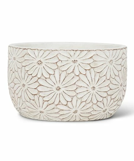 Display plants and other dΓ©cor in this unique planter that features textured floral style for a stylish yet understated look.