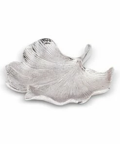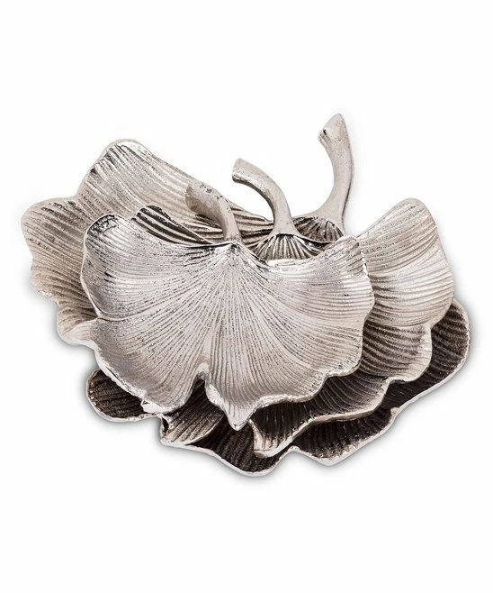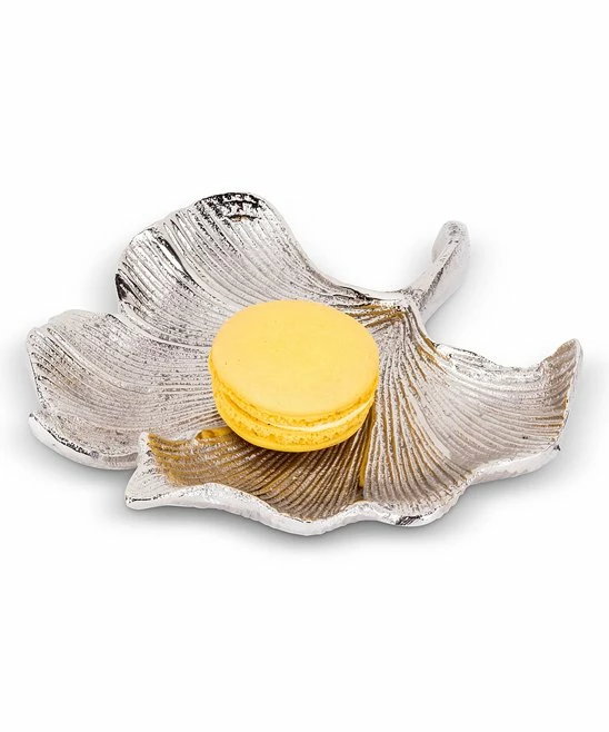 Display small trinkets or treats on this decorative plate shaped like a gingko leaf and embellished with a sleek metallic finish.
