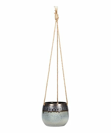 This hanging planter features a curving stoneware design in eye-catching ombré.