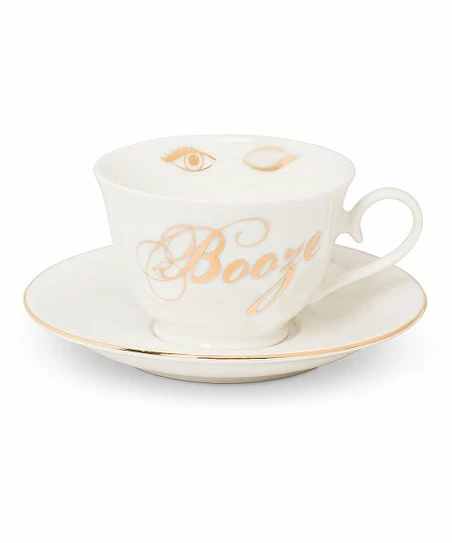 Add a splash of sinful elegance to your collection with this set crafted from bone and accented with 10-karat gold details on the teacup and saucer.
