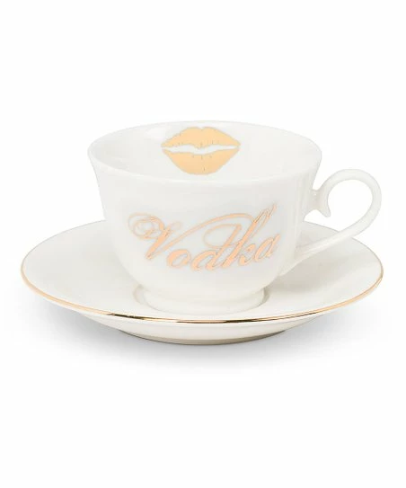 Add a splash of sinful elegance to your collection with this set crafted from bone and accented with 10-karat gold details on the teacup and saucer.