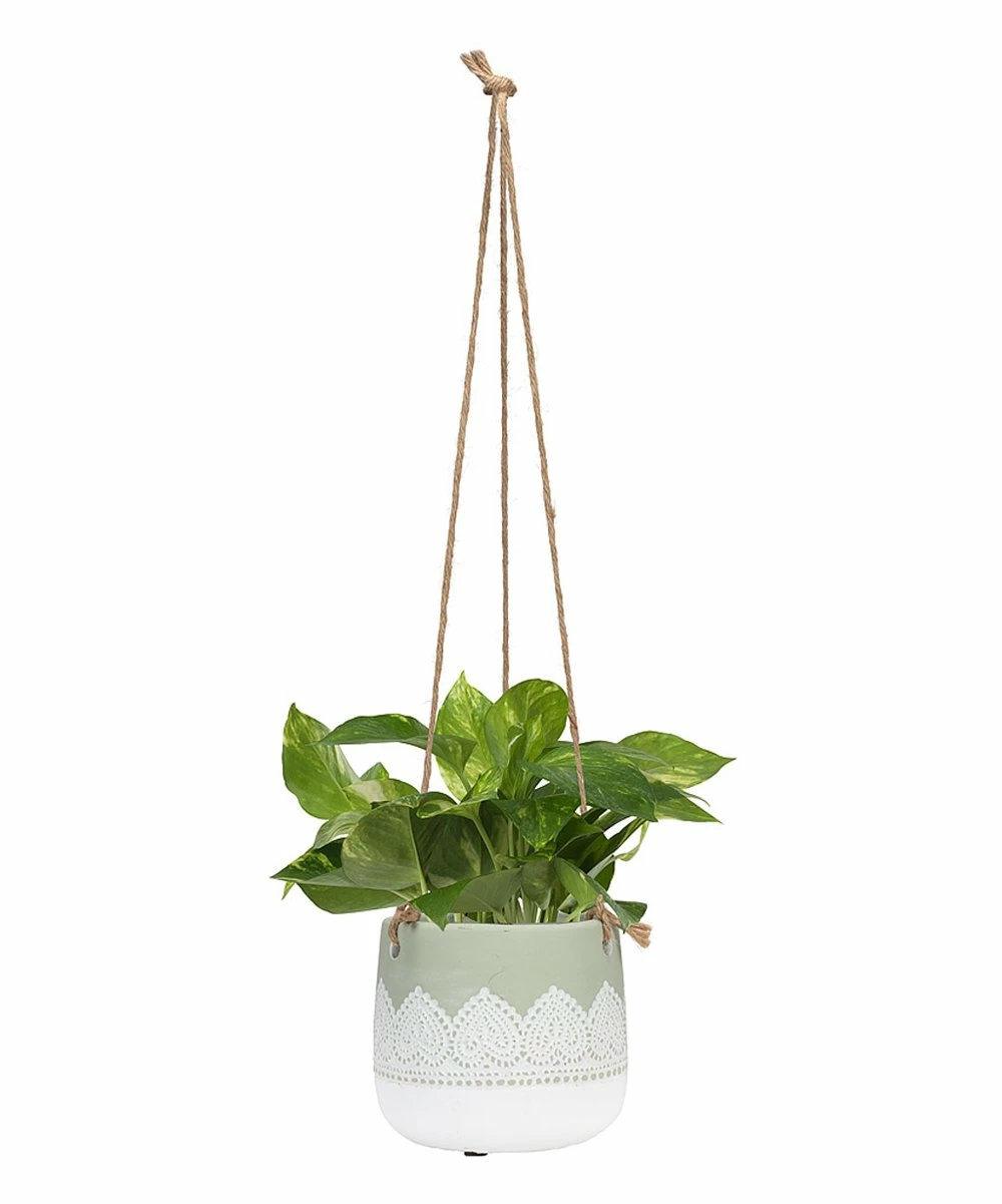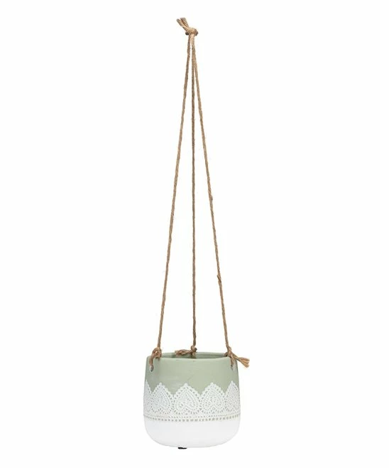 Fit your flowers into this hanging planter for new displays. A lace-detail heart pattern adds whimsical appeal.