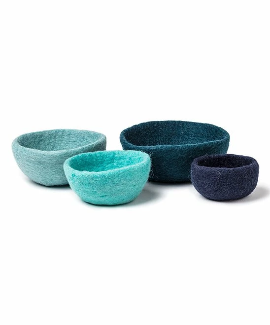 Your jewelry and trinkets will be sitting pretty in these jewel-toned nesting bowls. Soft wool adds a cozy cottage feel to these matching, multiuse pieces.