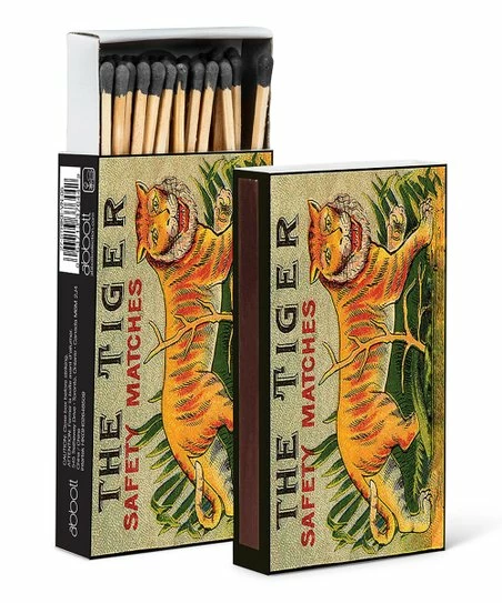 Light your way with these wooden matchsticks in a box decorated with a vintage tiger design.