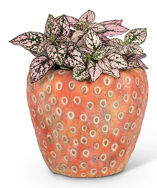 Frame your favorite flowers or greenery in this planter featuring a whimsical strawberry design.