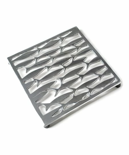 Protect your countertop or table from hot dishes with this aluminum trivet that features a cutout fish design to bring coastal character to your kitchen dรฉcor.