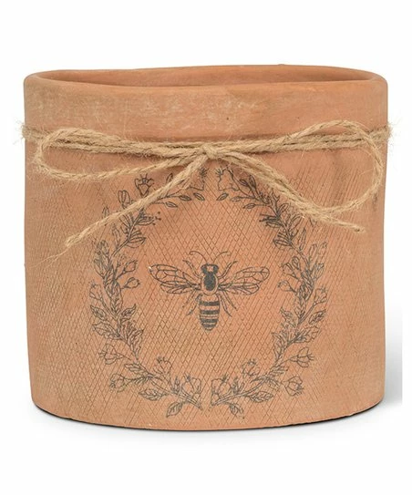 Fit your flowers into this planter for new displays. A bee crest graphic and burlap rope bow adds whimsical appeal.