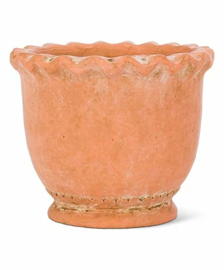 Crafted from cement, this planter features ruffled edges with an antique finish that creates a weathered look.
