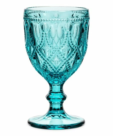 Update your drinkware collection with this colorful goblet featuring a richly embossed design.