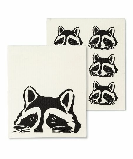 Refresh your kitchen linens while walking on the wild side with this set of dishcloths featuring an observant- raccoon print.