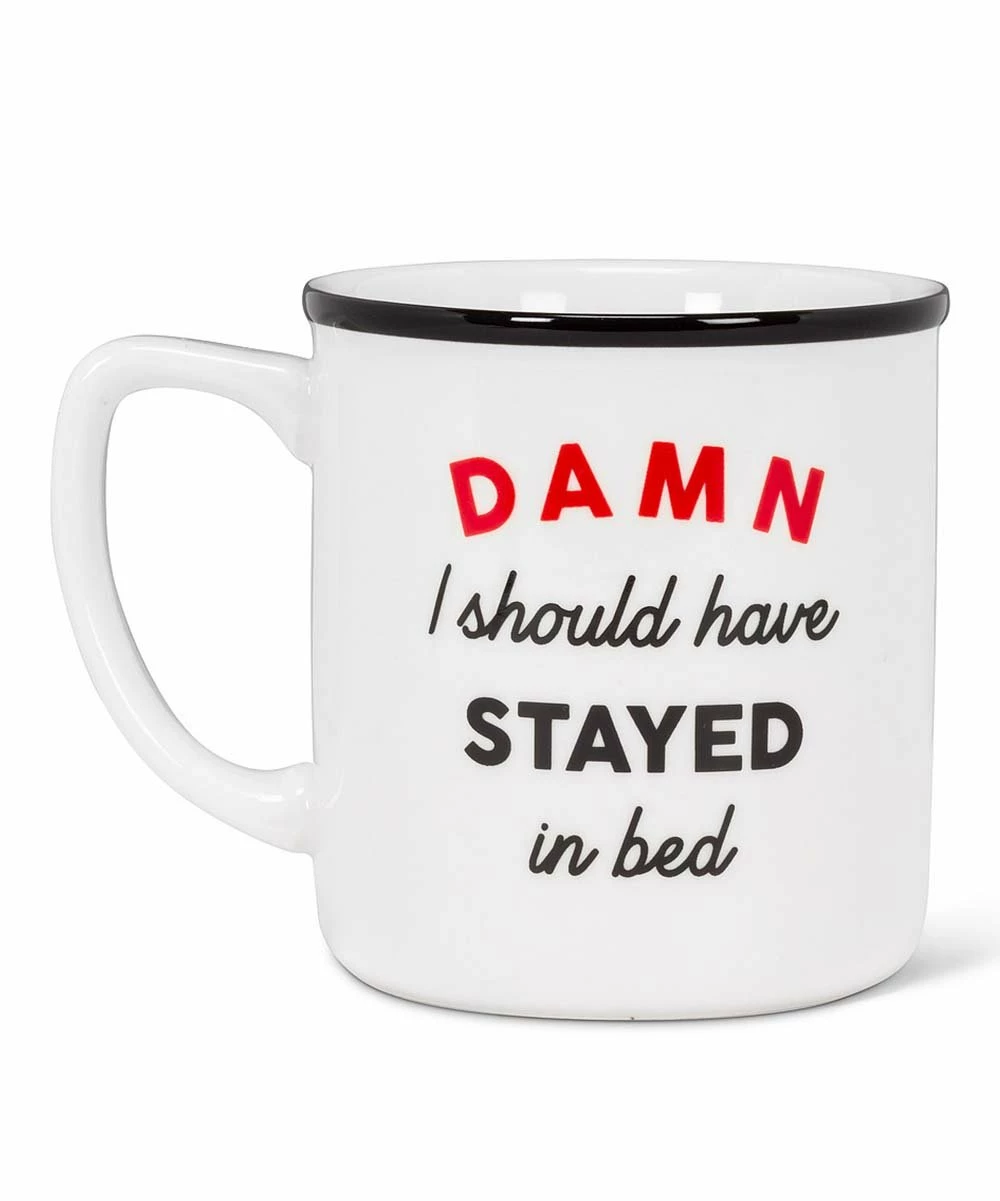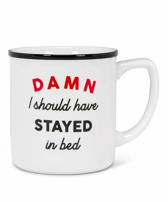 Have a fun start to your morning when you sip your favorite beverage from this dishwasher-safe mug that’s emblazoned with a lighthearted message.