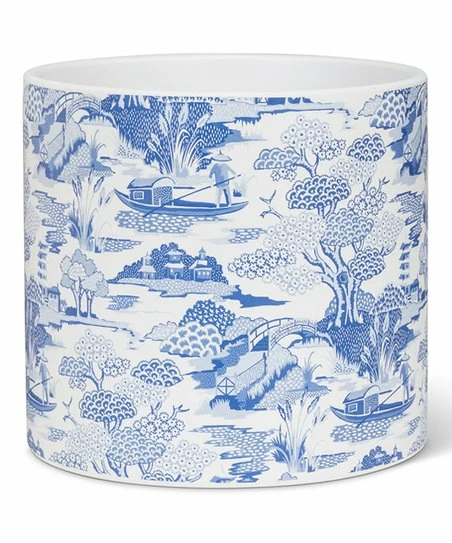 Fit your flowers into this planter for new displays. A toile river scene design adds whimsical appeal.