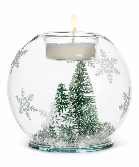 This glass ball votive holder is filled with wintry fun for a seasonal display.