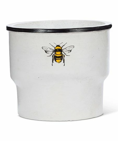 Put florals and greenery on display in this rimmed planter featuring a bold bee graphic.