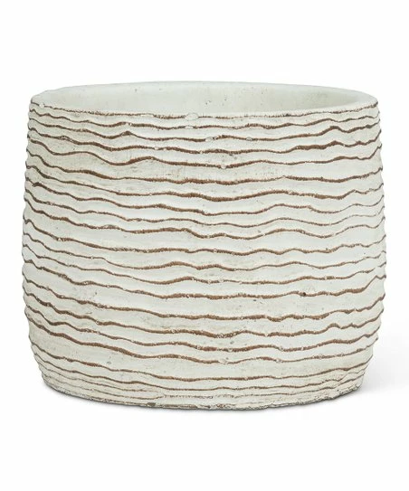 A distressed finish and wavy cement design make this planter a charming home for your favorite flowery or leafy friend.