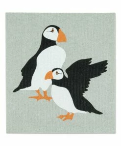 Best Sale ⭐ Abbott Gray & Black Puffins Reusable Swedish Dishcloth – Set Of Two For Home & Garden 😍